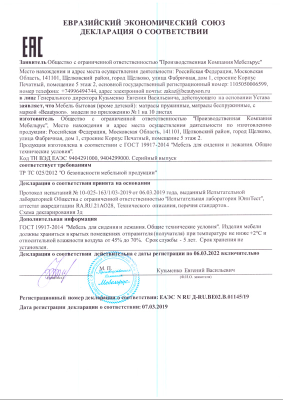 Гарантия распространяется на матрасы, кровати, основания и аксессуары представленные на нашем сайте.