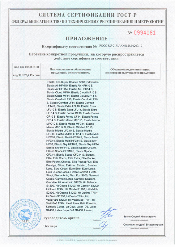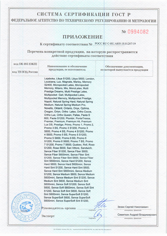 Гарантийные сроки от 18 месяцев до 60 месяцев, с даты, которая указана в накладной, в зависимости от модели матраса